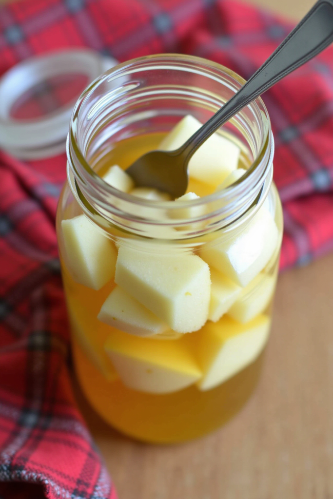 1. Slice apples into uniform wedges (leave the skin on for natural bacteria). Place them in a clean 1-quart glass jar.